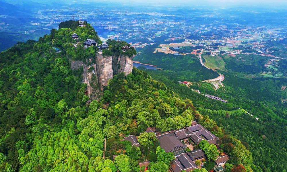 竇圌山景區(qū)是國家AAAA級景區(qū),由江油市竇圌山風(fēng)景名勝區(qū)管理中心旗下四川江油畫屏尚景景區(qū)管理有限責(zé)任公司獨立運營。景區(qū)位于四川江油城北25公里的涪江東岸,距綿陽66公里,距成都170余公里,交通便捷。是國家AAAA級旅游景區(qū),國家地質(zhì)公園、國家重點文物保護單位。整座山峰巖體裸露,丹赤如霞,三峰矗立,似一道畫屏,屬典型的礫巖丹霞地貌。自麓至頂約5公里許,行道迂回盤旋,林木蒼翠,景色秀麗。景區(qū)森林覆蓋面積為90%,每立方厘米富含10萬個負氧離子,夏季平均氣溫為21.7℃,是得天獨厚的天然避暑勝地。