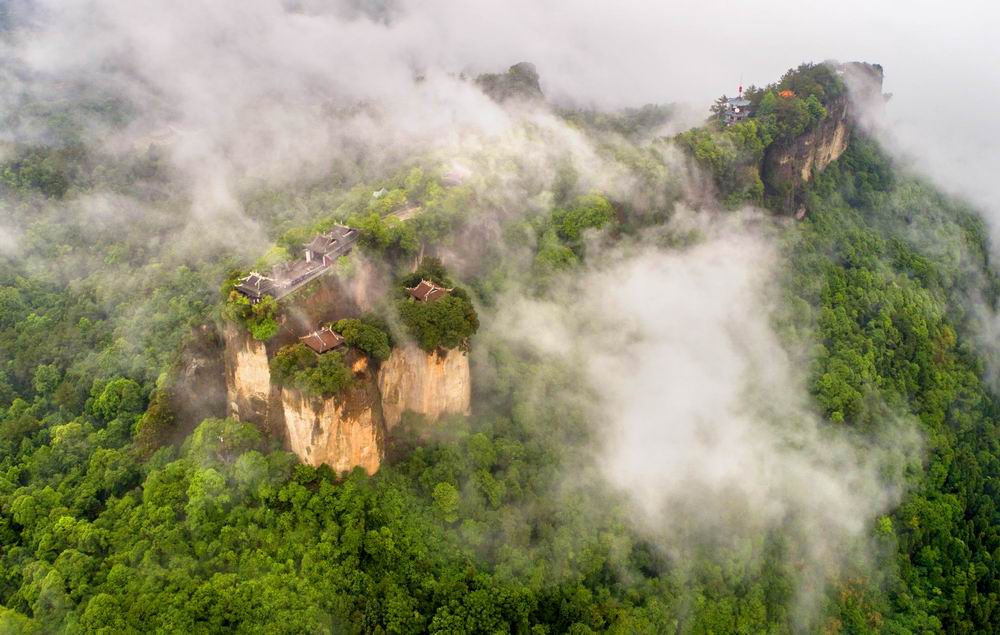 景區(qū)海拔高度1140米, 相對高度608米,山頂突兀而出的三座山峰,分別名為:東岳峰、飛仙峰、神斧峰,三峰峰頂分別建有東岳殿、竇真殿與魯班殿。三殿均以鐵瓦蓋頂,翹檐欲飛,每當雨后初晴或晨霧欲退之時,云紗輕裹山峰,殿宇忽隱忽現(xiàn),宛如天宮仙闋,而在天氣晴朗時,周圍百里都可以欣賞其凌空欲飛之勢。竇圌山為蜀中第五大名山,被譽為“天下無雙景,人間******峰”。以山勢奇特,林壑幽美著名,是與青城、峨嵋媲美的川北名山。竇圌山以奇、險、幽、秀為特色,山中有十大旅游區(qū)域,二十八個景點,博大幽深。其中云巖寺為國家重點文物保護管理單位。飛天藏具有八百多年歷史,舉世無雙;團嶺鐵索飛渡堪稱神州一絕;高空滑翔驚險刺激;載人索道安全舒適;桃園景區(qū)清雅爽朗;中國歷代皇帝長廊223尊圓雕石刻居全國之***。位于云巖寺山門前,左右各一根,高11米,生鐵鑄成的鎮(zhèn)山鐵桅,以及為安置云巖寺開山******代主持了然大師的舍利子所建的靈骨塔和以上的“圌嶺飛橋”、“鐵索飛渡”、“福地仙關(guān)”、“云巖剖石”、云巖古剎、轉(zhuǎn)輪經(jīng)藏和傳說中的碧云洞天共同組成了具有典型意義的竇圌山古八景。